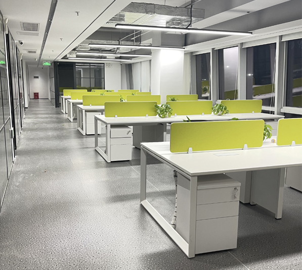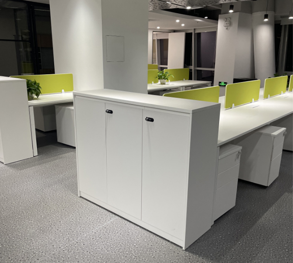 材質(zhì):1.采用E1級綠色環(huán)保三聚氫胺紙飾面,抗硬度性能好、具防刮、耐磨、防污、防損、防酸堿、耐火等特點;內(nèi)部基材為E1級優(yōu)質(zhì)實木顆粒板,握釘力強、板材經(jīng)防蟲防腐處理、比重合理。板材臺面厚度為25mm,所有基材均達到國家環(huán)保標準,物理、化學(xué)性能指標均達到國際相關(guān)標準。2.封邊用材;采用PVC封邊條,熱熔膠封邊,封邊嚴密、平整,與整塊板材嚴絲合縫,不脫膠、表面無膠漬。3.五金配件:采用優(yōu)質(zhì)五金配件,所有五金件作防銹、防腐處理。4. 配置優(yōu)質(zhì)鋼制臺架,表面經(jīng)過氧化工藝處理后,采用半亞光粉體涂料靜電噴涂,耐磨、抗酸堿、防銹能力強 、環(huán)保耐用,主體不易變形。